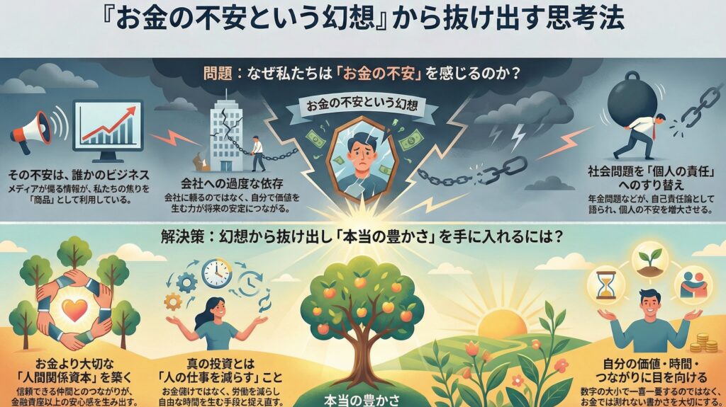 • お金の不安は「幻想」であり、社会やメディアによって作られている。