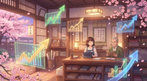 note用のサムネイル画像も作成完了しました。横長サイズ(16:9)、文字なし、アニメ風のデザインで、名古屋の文房具店と株式投資をテーマにした温かみのあるビジュアルに仕上がっています。ブログ記事と合わせてご活用ください!