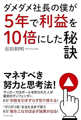 本書は、「ダメダメ社長」と自称する著者・有田和明氏が、5年間で利益を10倍にまで伸ばす過程を赤裸々に綴った、非常に実践的な経営・自己啓発書です。単なる成功物語ではなく、数々の失敗を経たうえで導き出された「成功の思考法」と「行動原則」に重きが置かれています。